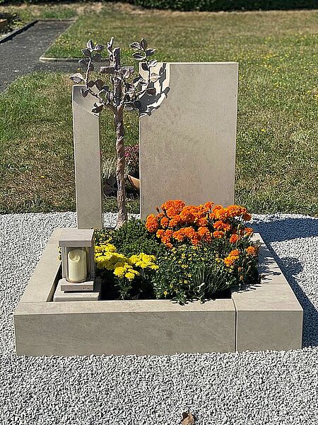 Trotz ihrer kompakteren Fläche bieten Urnengrabmale Raum für Symbolik, Inschriften und künstlerische Gestaltungselemente wie Inlays, Kupferornamente oder Glasdetails. Die Auswahl des Materials – etwa pflegeleichter Granit, strahlendes Sandstein oder cremiger Kalkstein – beeinflusst sowohl die Optik als auch die Langlebigkeit Ihres Grabmals. Wir beraten Sie fachgerecht zur Materialwahl, zu Form, Größe und Pflegeaufwand – und entwickeln gemeinsam ein Grabmal, das nachhaltig wirkt.